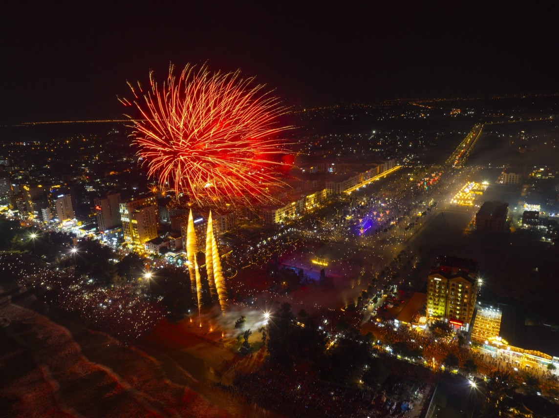 | Pháo hoa rực sáng bầu trời Sầm Sơn. (Ảnh: QH) |