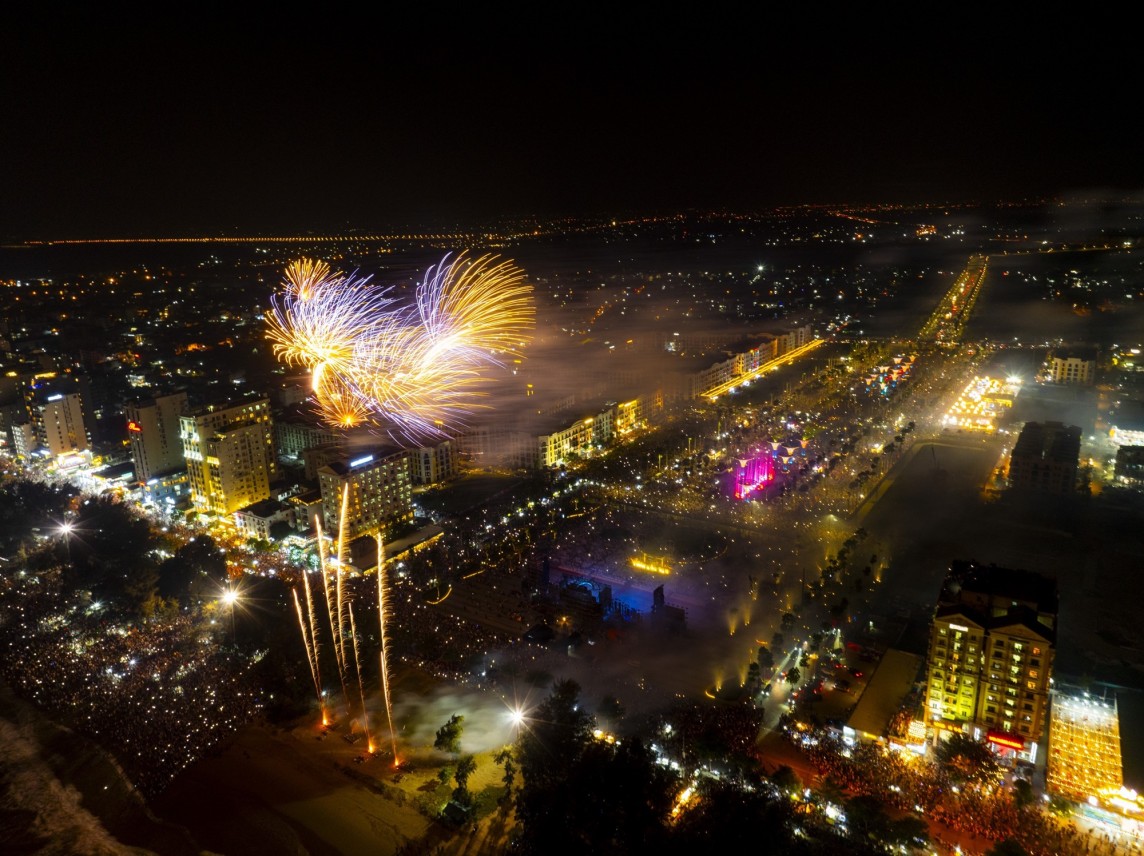 | Hàng trăm nghìn người dân đã mãn nhãn với màn pháo hoa chào hè 2024 cửa tỉnh Thanh Hóa. (Ảnh: QH) |