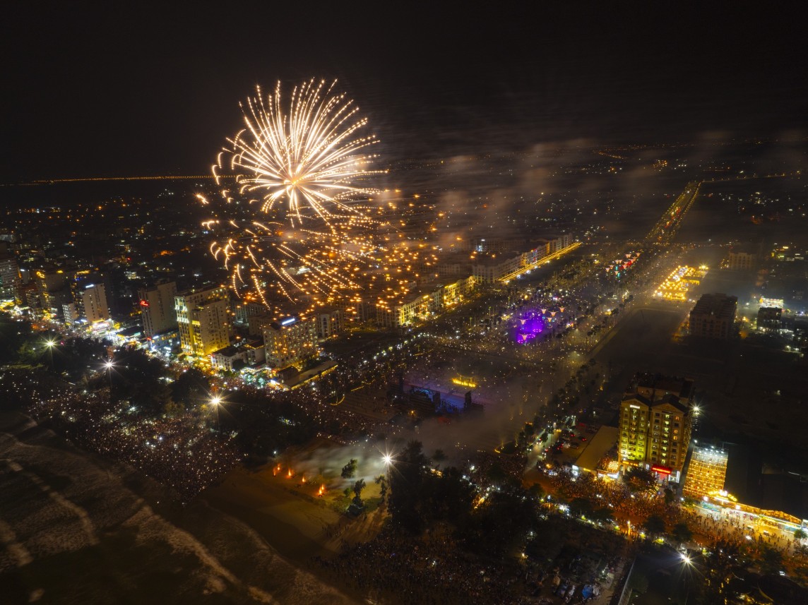 | Sau nghi thức khánh thành Quảng trường biển và các tiết mục văn nghệ đặc sắc, người dân địa phương và du khách thập phương được chiêm ngưỡng màn bắn pháo hoa hoành tráng trong khoảng 15 phút. (Ảnh: QH) |