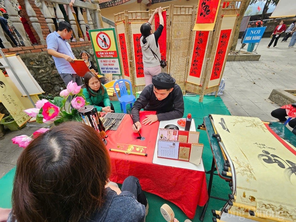 Ngoài việc dâng hương tại đền Cửa Đạt, du khách còn xin chữ với mong ước có sức khỏe dồi dào, mọi việc hanh thông. Ảnh: Hoàng Minh.