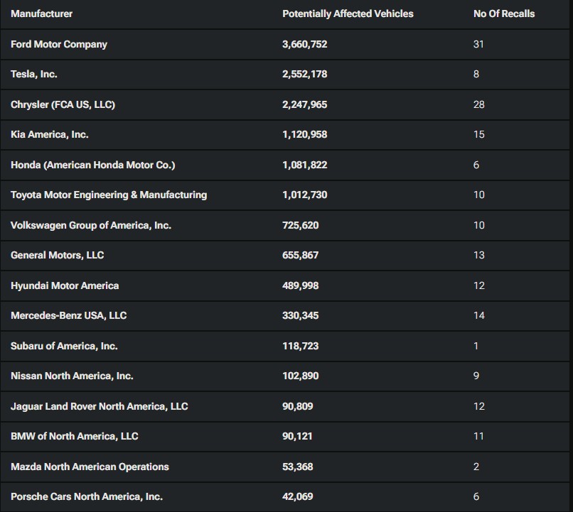 Theo báo cáo kiểm tra giữa năm 2024, vấn đề có vẻ hiện trở nên trầm trọng hơn so với năm 2023. Năm ngoái, Ford đã ban hành 54 lệnh triệu hồi, ảnh hưởng đến 5.692.135 xe trên toàn cầu. Số lượng xe bị thu hồi của Ford lại cao hơn tổng số xe bị thu hồi của General Motors, Honda, Toyota, Nissan, VW và BMW cộng lại.