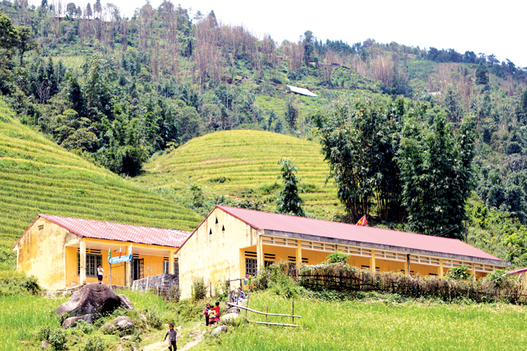 Hành trình đến ngôi trường này khác hoàn toàn với những con đường tới trường mà một người từng sinh ra và lớn lên ở thành phố như tôi đã trải qua trong suốt những năm đi học. 7 km để đến được điểm trường là những quãng đường gập ghềnh, khúc khuỷu, có những đoạn đường đất nhỏ xíu, chỉ đủ một người qua, những đoạn sình lầy phải bám vào cây bên đường mới có thể đi từng bước; đan xen là những con suối, có đoạn suối phải lần theo từng phiến đá hiểm trở mới có thể lội qua. Do không lường trước con đường khó đi, nên dù đã đi giày thể thao, tôi vẫn bị trơn trượt ngay từ đoạn đầu và phải cuốc bộ chân trần. Chưa kể tôi và một vài người trong đoàn còn bị lạc, nhưng trong cái rủi lại có cái may, chúng tôi gặp được chị Chảo Lở Mẩy – người dân tộc Dao đỏ. Không những chỉ đường giúp, chị còn đi cùng đến tận điểm trường và trở thành hướng dẫn viên bất đắc dĩ.
