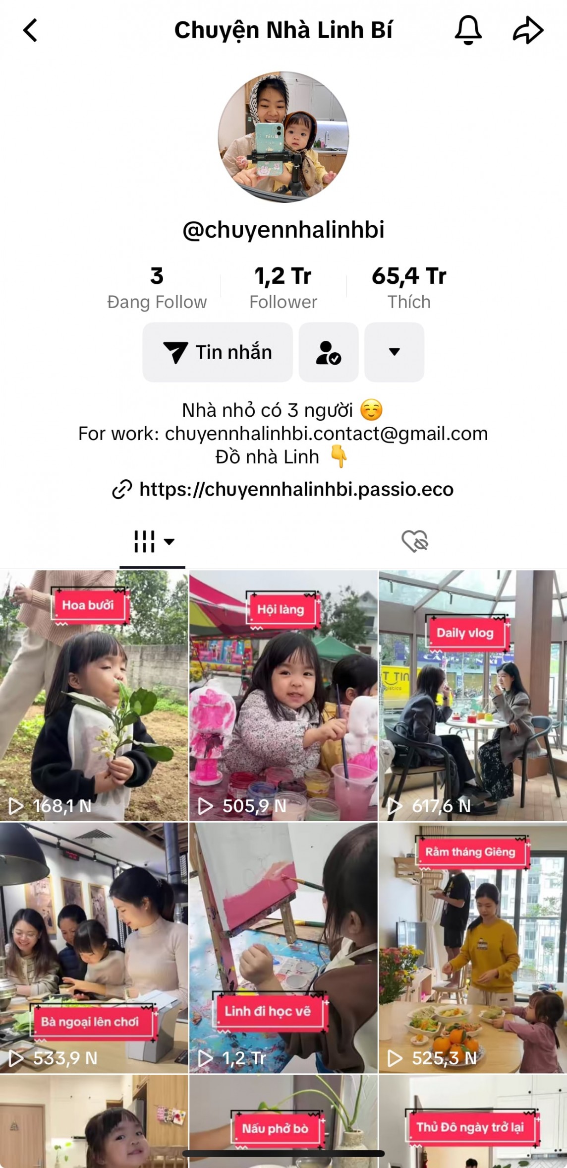 Với hơn 1,2 triệu người theo dõi, thu về hơn 65,4 triệu lượt thích, những video đời thường rất gần gũi nhưng lại cực kỳ đáng yêu của em bé Linh Bí với kênh Tik Tok “Chuyện nhà Linh Bí”, đã nhanh chóng thu hút sự chú ý của cộng đồng mạng.