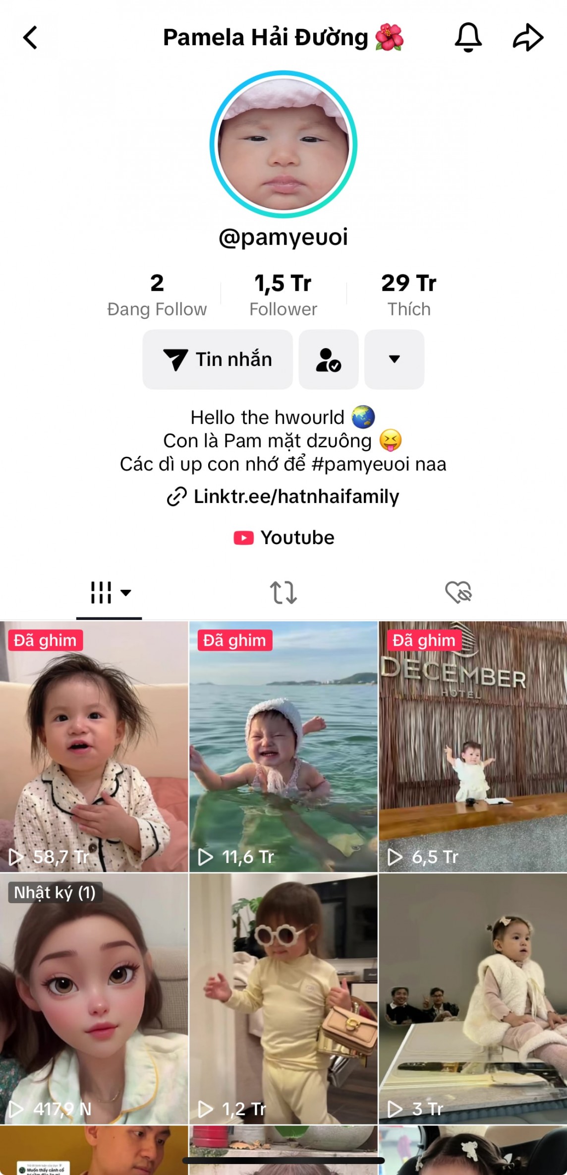 Kênh Tik Tok của bé Pam nhận được nhiều sự yêu thương của khán giả. |