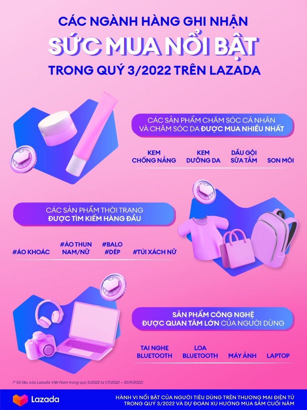 Dưới đây là những hành vi tiêu dùng nổi bật được ghi nhận trên Lazada Việt Nam trong quý 3 năm 2022 (tháng 7-8-9) và một số dự đoán xu hướng mua sắm cuối năm.