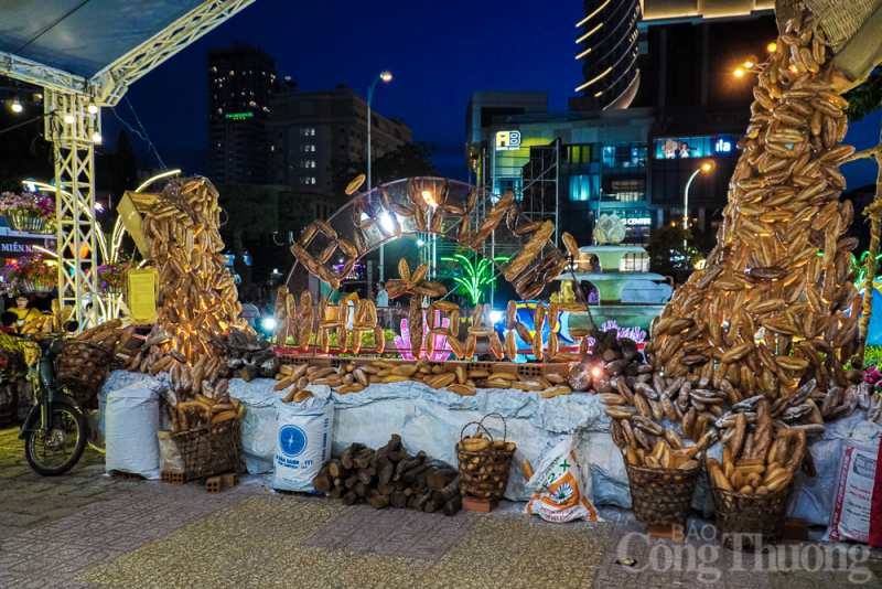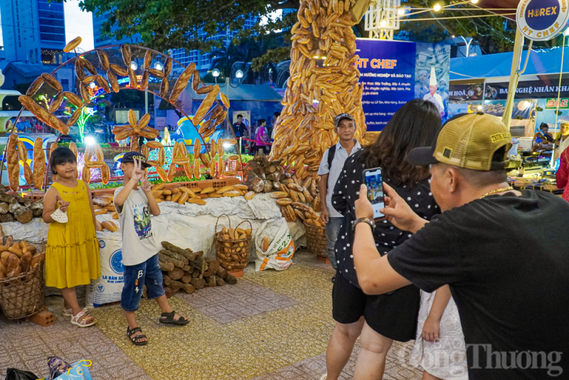 | Điểm nhấn của Lễ hội ẩm thực là triển lãm "Bánh mì Nha Trang xưa và nay" với tháp bánh mì có chiều cao 3m, chiều dài 6m, được kết hợp từ hàng trăm chiếc bánh mì. |