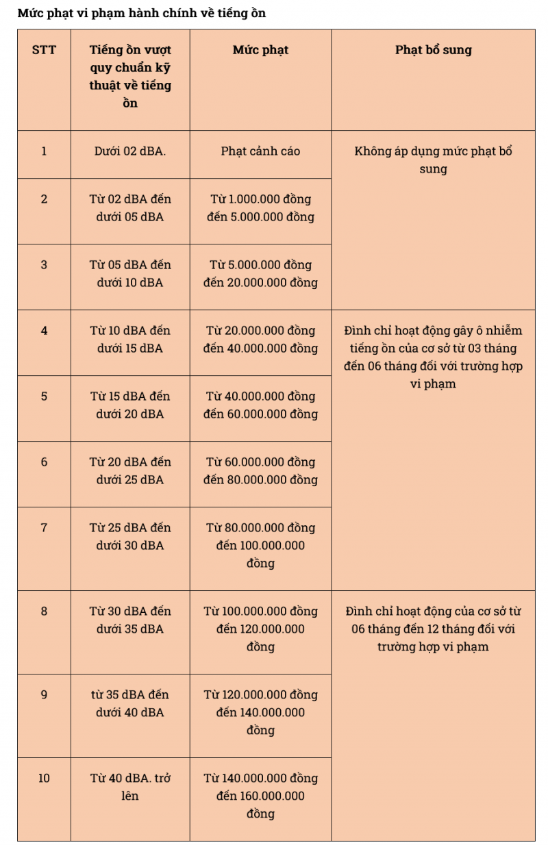 Không chỉ gây ra tiếng ồn sau 22h đêm mới bị xử phạt, trường hợp cá nhân, hay tổ chức, cơ sở kinh doanh gây ra tiếng ồn vượt ngưỡng quy định của pháp luật cho phép thì cũng sẽ bị xử phạt vi phạm hành chính. Mức phạt quy định tại Điều 22 Nghị định 45/2022/NĐ-CP.