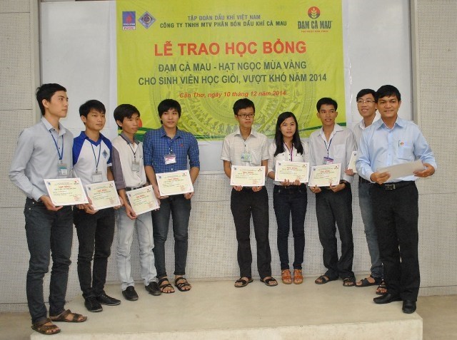 | Lãnh đạo PVCFC trao học bổng cho các em học sinh, sinh viên nghèo vượt khó vươn lên trong học tập |