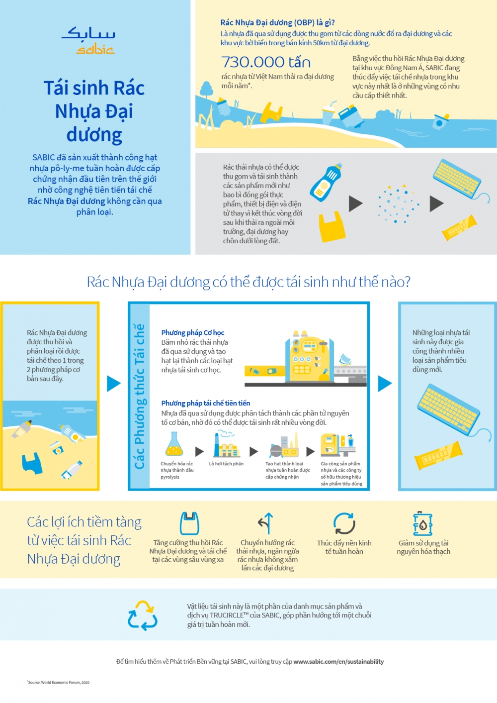 Các loại hạt nhựa polymer tuần hoàn tái sinh từ rác nhựa đại dương đã được cấp chứng nhận này thuộc danh mục các giải pháp tái sinh TRUCIRCLE™ của SABIC, được khách hàng của SABIC sử dụng để sản xuất các sản phẩm mới và sẽ công bố trong vài tháng tới.