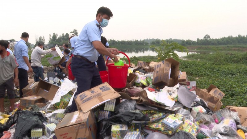 Toàn bộ tang vật bị tiêu hủy là hàng giả, hàng giả mạo nhãn hiệu, hàng nhập lậu, không rõ nguồn gốc, xuất xứ, không được lưu thông trên thị trường đã quá hạn sử dụng và không đảm bảo an toàn cho người sử dụng, tổng trị giá hàng hóa gần 3 tỷ đồng.