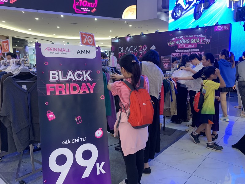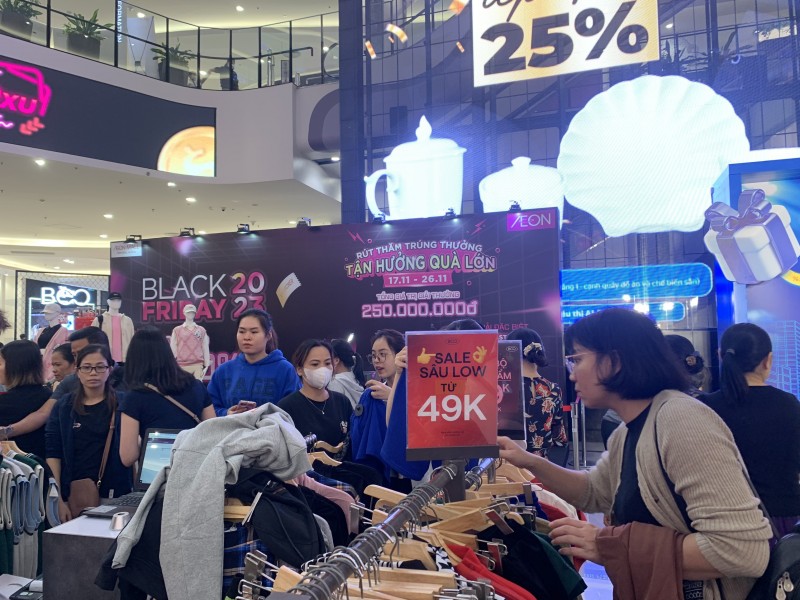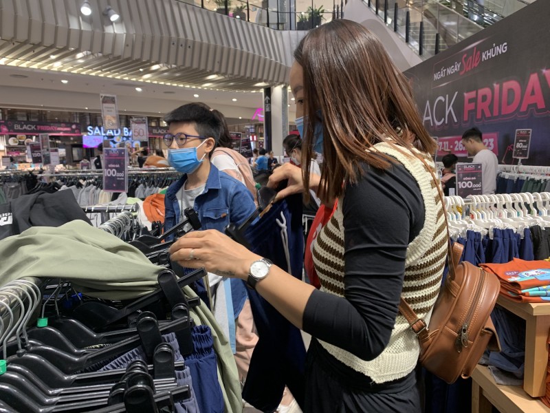Tại Hà Nội, sau Black Friday, dòng người đổ về các cửa hàng thời trang trong trung tâm thương mại để mua sắm đồ giảm giá vẫn rất đông. |
