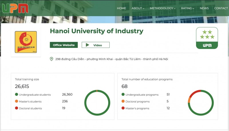 Hệ thống xếp hạng đối sánh chất lượng đại học UPM (University Performance Metrics) vừa công bố kết quả xếp hạng đối sánh cho các trường đại học. Theo đó, Đại học Công nghiệp Hà Nội đạt chuẩn 5 sao theo định hướng ứng dụng.