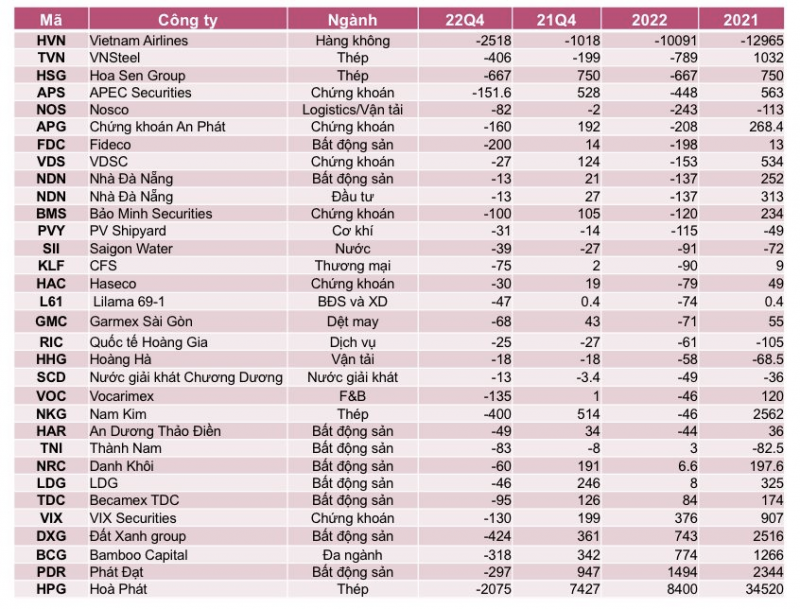 Ngoài những doanh nghiệp thuộc các nhóm ngành trên, một số doanh nghiệp khác cũng gặp phải thua lỗ nặng nề.