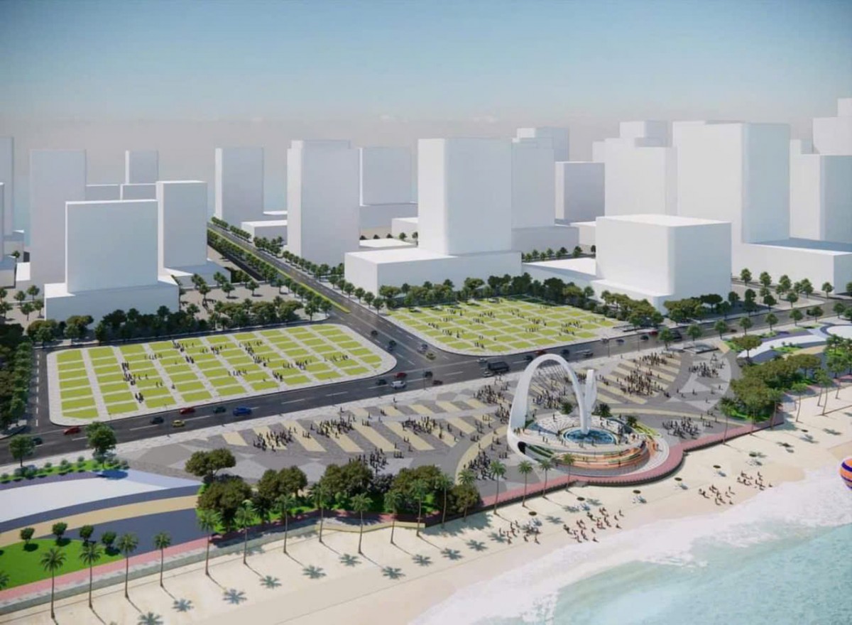 | Toàn cảnh quảng trường và công trình điểm nhấn thuộc dự án Chỉnh trang trục đường Thùy Vân. Ảnh: Dico House |