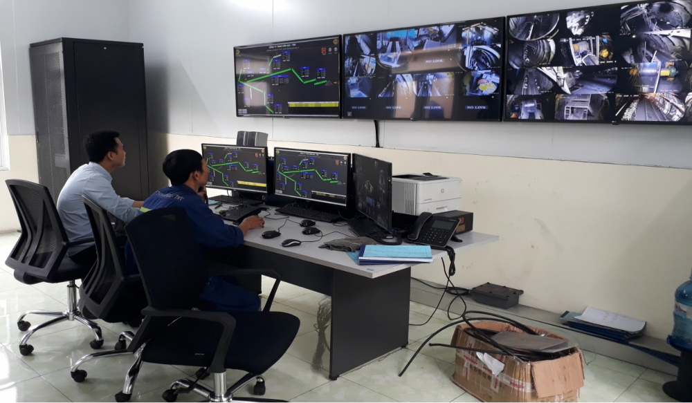 Thao tác vận hành giám sát các tuyến băng tải tại phòng điều khiển trung tâm |