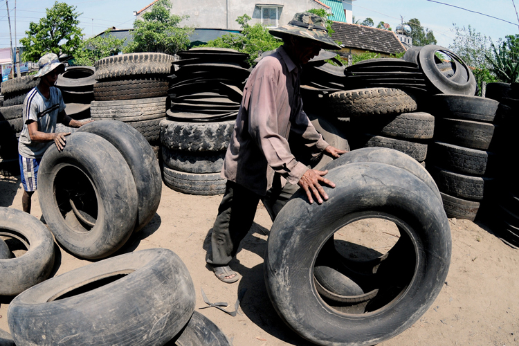 | Tái chế lốp ôtô cũ diễn ra công khai |