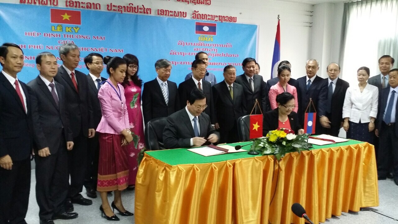 Sáng nay (3/3/2015), được sự ủy quyền của Chính phủ hai nước, Bộ trưởng Vũ Huy Hoàng và Bộ trưởng Khem-ma-ni Phôn-xê-na đã ký Hiệp định Thương mại giữa Chính phủ nước Cộng hòa Xã hội Chủ nghĩa Việt Nam và Chính phủ nước Cộng hòa Dân chủ Nhân dân Lào, thay thế Hiệp định Thương mại đã ký năm 1998 giữa Chính phủ hai nước.