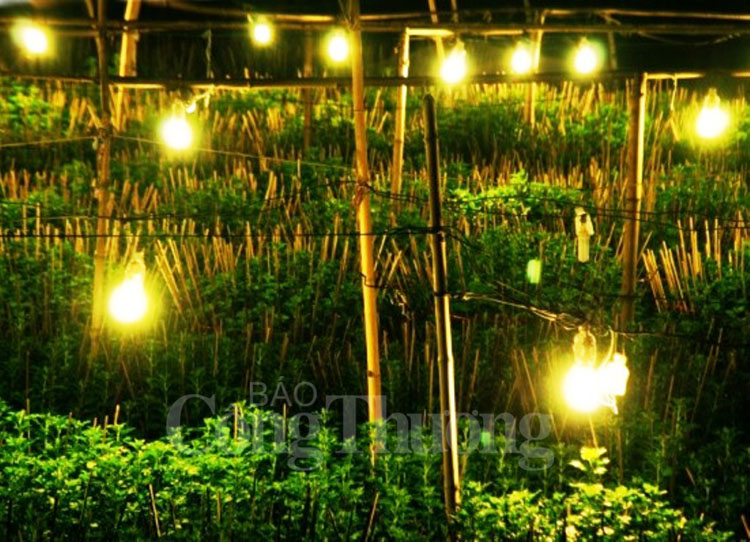 Để tăng năng xuất trong mỗi mùa vụ, khoảng 5 năm trước đây, người nông dân trồng hoa cúc ở khu vực Thái Phiên (phường 12) và khu vực Trại Mát ( phường 11) TP.Đà Lạt đã dùng bóng đèn Compact để chong cho hoa cúc nở vào đêm. Phương pháp canh tác này giúp hoa nở đúng ngày, hoa to, cánh đẹp và giá bán cao hơn. Nông dân Nguyễn Hồng, người đã có kinh nghiệm trồng hoa cúc hơn 10 năm tại phường 12 cho biết, trồng hoa cúc nếu không chong đèn chừng 20 ngày hoa sẽ cho nụ nhưng cành hoa ngắn, bông nhỏ bán mất giá. Muốn hoa nở to, ngắn thời gian, nhà vườn học kinh nghiệm của người trồng thanh long ở Bình Thuận dùng đèn Compact chong cho hoa và năng xuất vượt trội thấy rõ. “Bước đầu chỉ một vài nhà vườn áp dụng, sau đó phương pháp chong đèn cho hoa được nhân rộng ra cả làng”- ông Hồng nói.