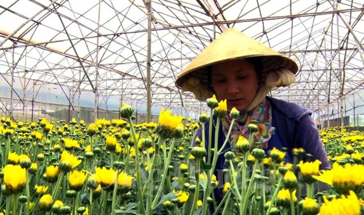 | Nông dân Đà Lạt trồng hoa cúc trong nhà kính và sử dụng đèn Led cho năng xuất cao |