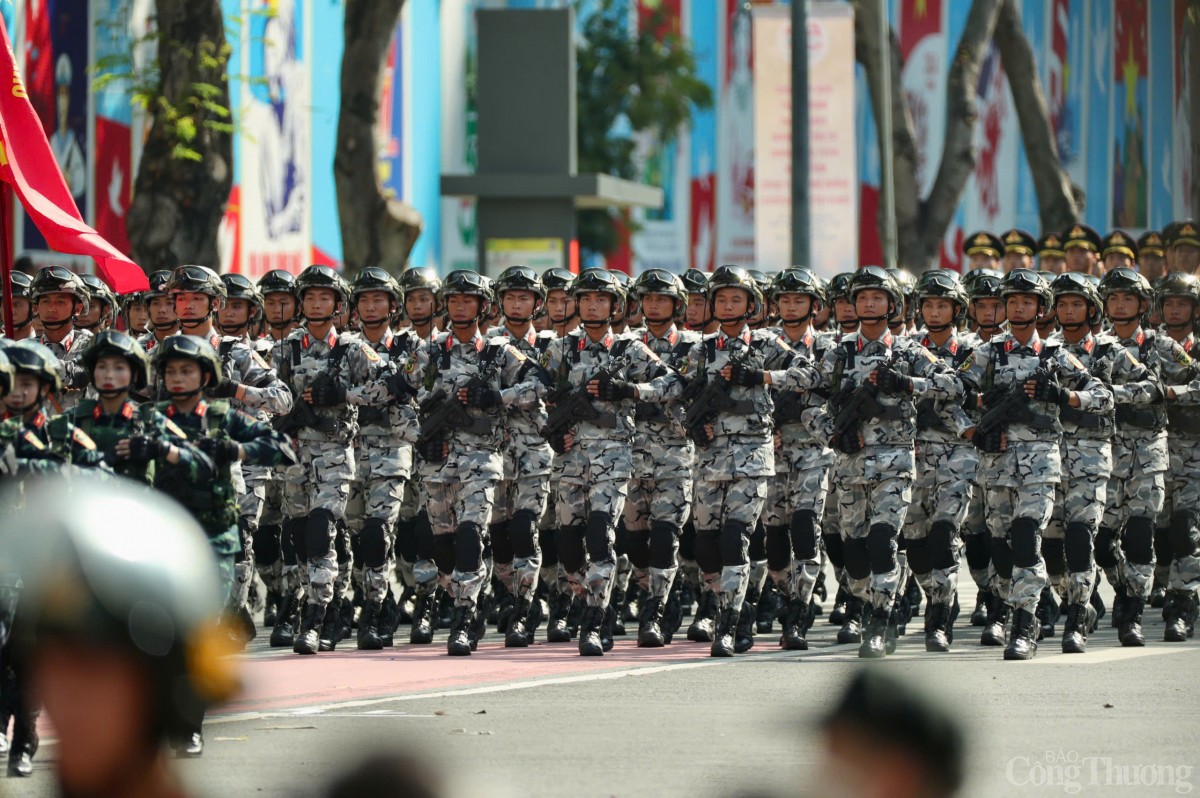 Tham gia lễ diễu binh, diễu hành có 48 khối đi và đứng, với khoảng 13.000 người tham gia. Trong đó, phần diễu binh gồm 36 khối là lực lượng của Bộ Quốc phòng và Bộ Công an thực hiện. Phần diễu hành kế tiếp gồm 12 khối do thành phố Hồ Chí Minh đảm nhiệm. Ngoài ra, là các khối xe nghi trượng; khối quân đội của các nước bạn: Lào, Campuchia và Trung Quốc cùng tham gia.