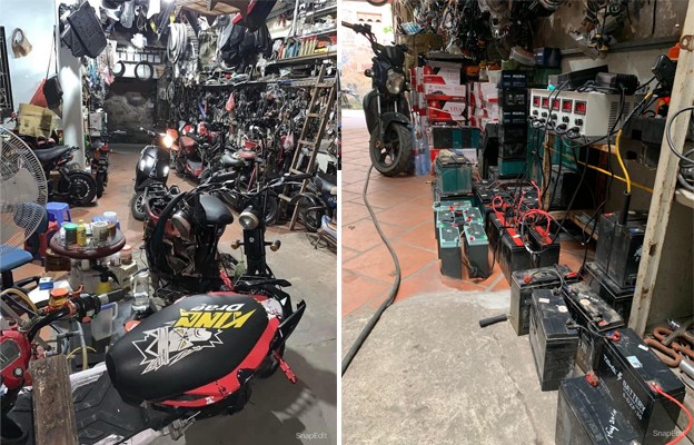 Nhân chứng sống cạnh nhà số 1 cho biết, đây là căn nhà kết hợp việc cho thuê trọ và ở tầng 1 dùng làm nơi tập kết xe máy điện, bình ắc quy và diện tích này dùng để sửa các loại xe nói trên.