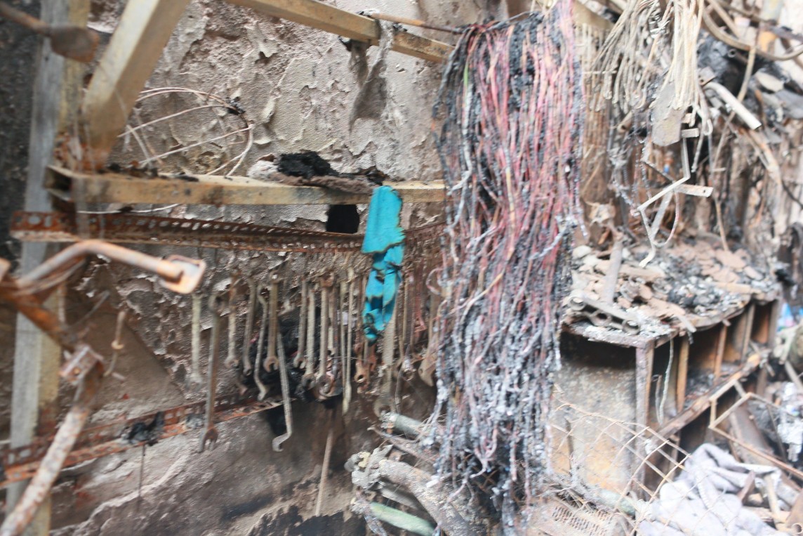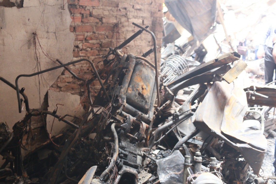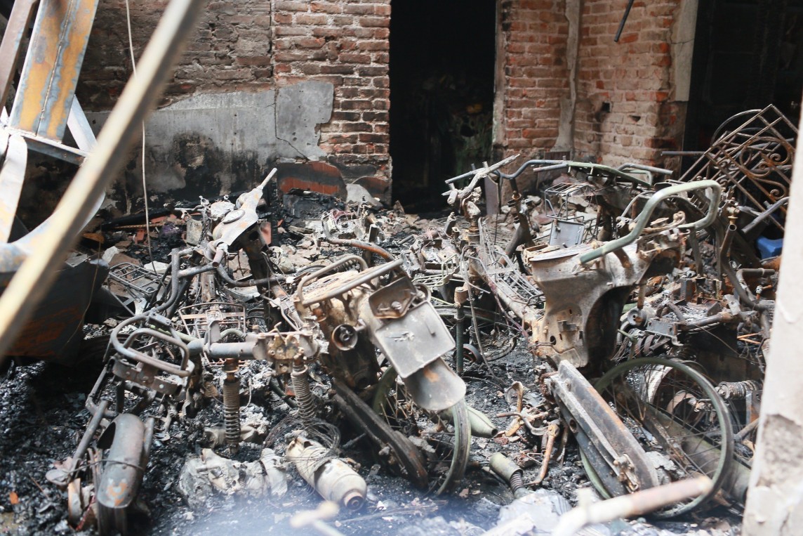 | Những hình ảnh sau khi cháy, nhiều xe máy và các phụ tùng tại hiện trường. (Ảnh: Đoàn Tuấn) |