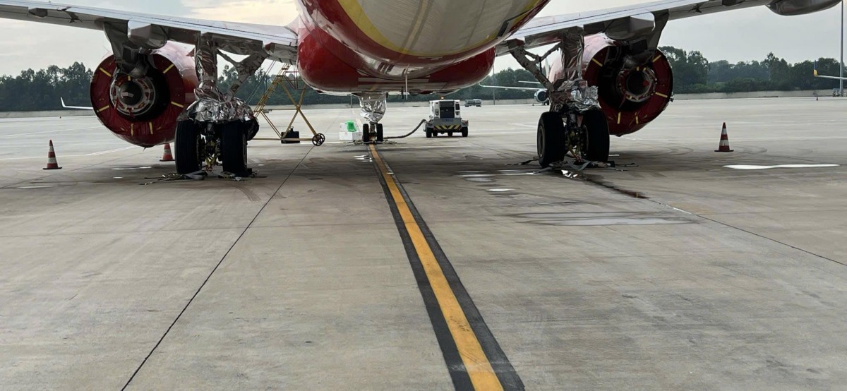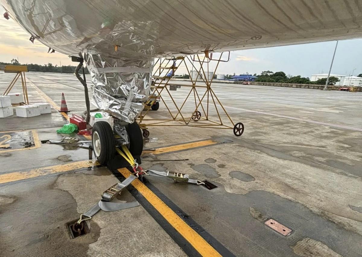 Việc chằng néo tàu bay đỗ lại tại Cảng HKQT Nội Bài đã đã hoàn tất. Ảnh: NIA