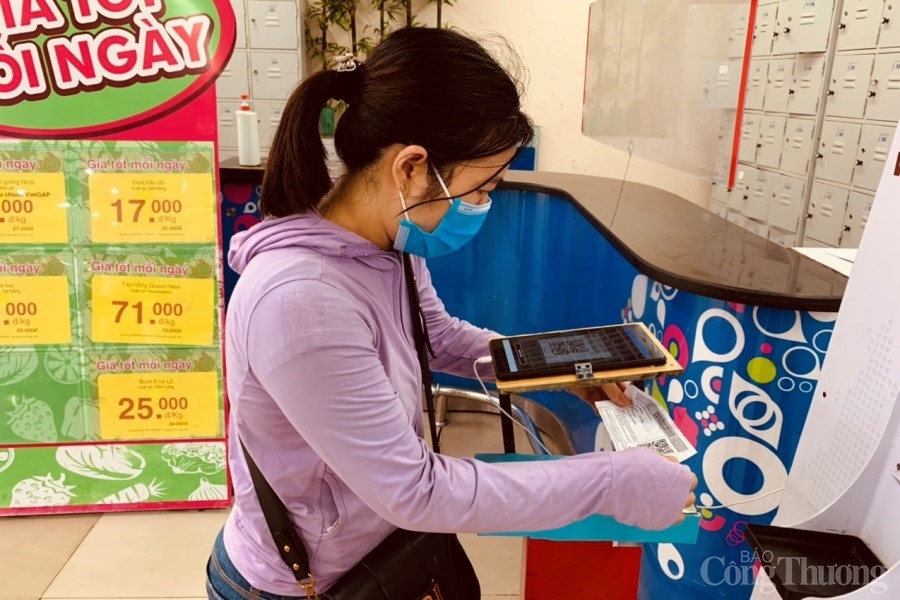 | Tại các siêu thị ghi nhận đều đã chuẩn bị máy quét QR Code để kiểm tra thẻ đi mua hàng QR Code của người dân. |