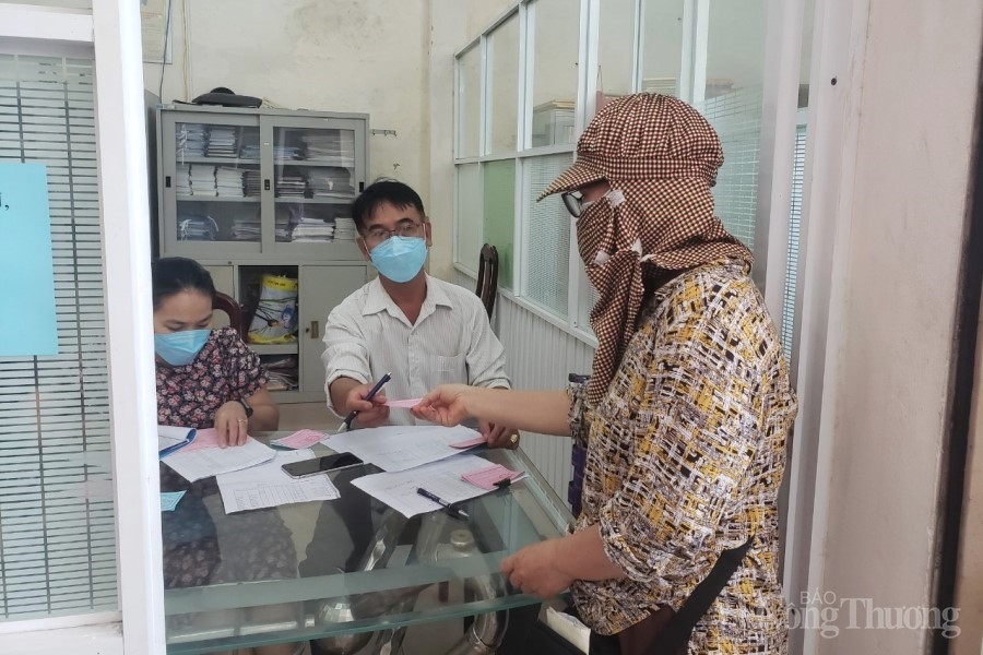 | Chợ Hòa Khánh (Liên Chiểu) sáng nay các tiểu thương mới lên nhận phiếu đi bán theo ngày chẵn lẻ |