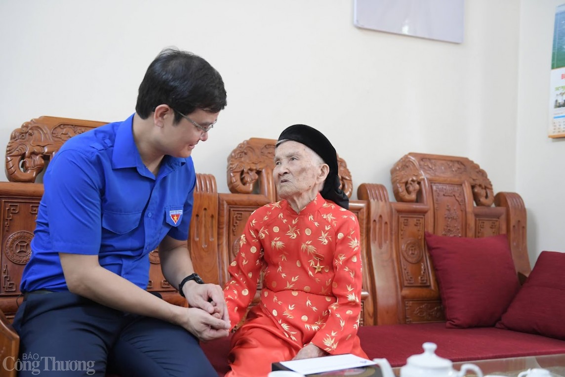 | Bí thư thứ nhất Trung ương Đoàn Bùi Quang Huy thăm Mẹ Việt Nam anh hùng Nguyễn Thị Cong |