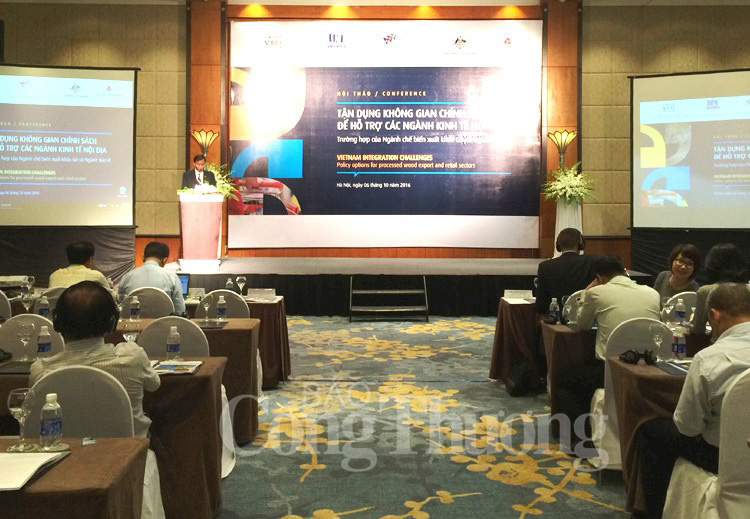 Phát biểu tại buổi hội thảo, bà Nguyễn Thị Thu Trang - Giám đốc Trung tâm WTO và Hội nhập VCCI - cho hay, không gian chính sách là những biện pháp còn lại để chúng ta hỗ trợ doanh nghiệp trong nước phát triển kinh doanh. Nhưng với các cam kết từ WTO cho đến FTA thế hệ mới, không gian này đang bị hẹp đi rất nhiều. Cụ thể, đối với ngành gỗ, Nhà nước không thể trợ cấp cho xuất khẩu gỗ và sản phẩm đồ gỗ, các biện pháp hỗ trợ không được mang lại lợi ích tài chính cho doanh nghiệp gỗ, chỉ có thể trợ cấp chung cho nhiều nhóm đối tượng theo tiêu chí khách quan… Còn với ngành bán lẻ, mặc dù vẫn chưa có nhiều hạn chế về biện pháp hỗ trợ, nhưng trong Hiệp định Đối tác kinh tế chiến lược xuyên Thái Bình Dương (TPP) và Hiệp định Thương mại tự do Việt Nam - EU (EVFTA), các biện pháp bảo vệ nhà bán lẻ trong nước trước các nhà bán lẻ nước ngoài sẽ không còn. Trong TPP có thể còn được tiếp tục sử dụng nhưng chỉ trong thời gian 5 năm sau ngày TPP có hiệu lực.