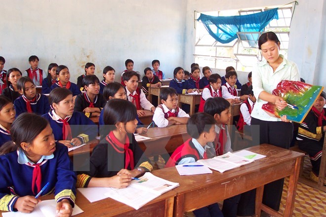 Sau khi hoàn thành chương trình tiểu học, học sinh được học tại các trường phổ thông dân tộc nội trú, trường phổ thông dân tộc bán trú, trường trung học cơ sở công lập.