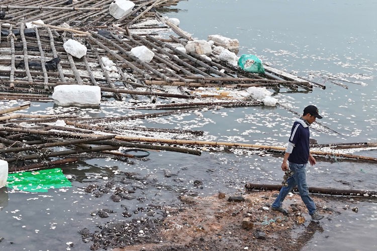 | Lồng bè nuôi trồng thuỷ sản của ngư dân Quảng Ninh bị bão số 3 phá huỷ hoàn toàn. Ảnh: Minh Khuê |