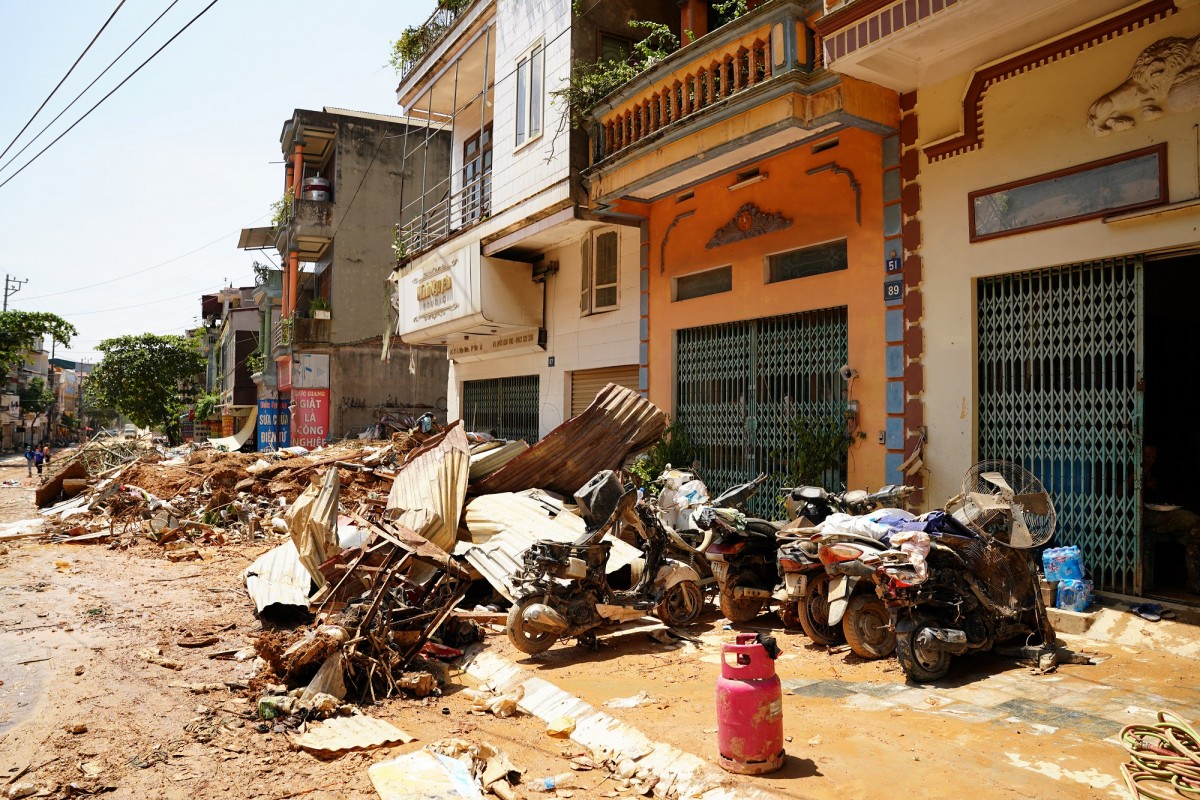 Khu vực chợ trung tâm huyện Trấn Yên (tỉnh Yên Bái) bị nước ngập lên đến gần 2m, rác bùn lên đến hơn 1m. “Ngày nào cũng phải có đến vài trăm người dọn dẹp, cào quét, kéo bùn ra. Làm liên tục 6-7 ngày, đường mới được như thế này, có nơi bùn vẫn ngập cao đến 20-30cm”, bà Nguyễn Thị Loan (ngụ đường Sông Thao, huyện Trấn Yên) chỉ con đường quanh chợ và nói. Bà Loan kể thêm: “Cả đời tôi, chưa bao giờ thấy lũ lớn, ngập sâu như đợt này. Gần sông, ở phía trong có 2 nhà chỉ có cụ già hơn 70 tuổi và hơn 80 tuổi ở một mình, hôm nhà ngập cao lên tầng 2, ở trong không ra được, vẫy tay gọi mọi người đến cứu”.