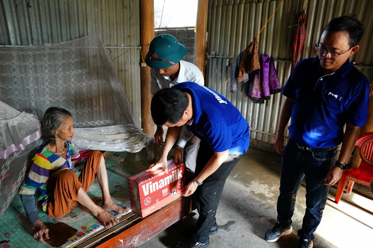 Vinamilk đem sữa, nước uống đến tận tay người dân và lực lượng đang làm nhiệm vụ khắc phục hậu quả bão lũ.
