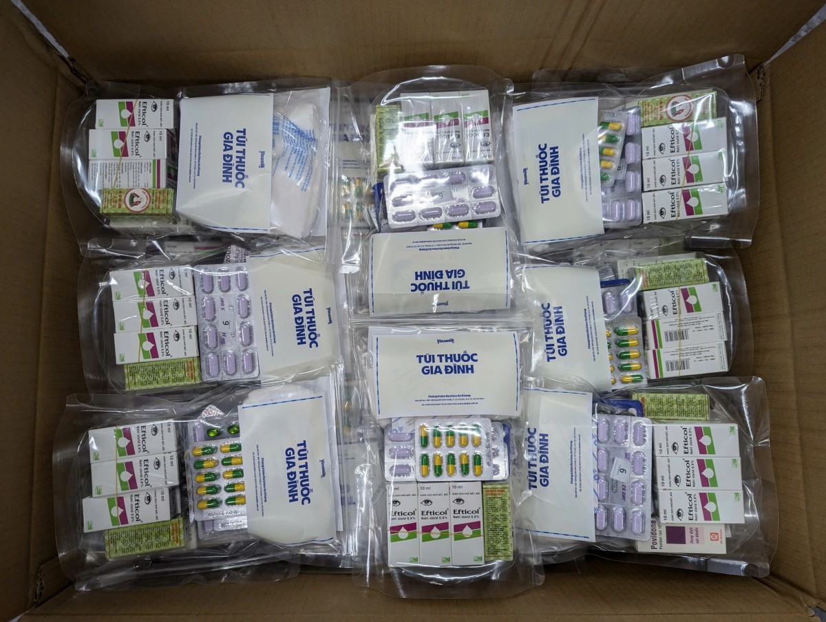 Ngoài ra, các y bác sĩ, dược sĩ của Phòng khám đa khoa An Khang (Vinamilk) tại TP.HCM cũng đã cùng nhau chuẩn bị 600 túi thuốc gia đình để gửi đến bà con các tỉnh miền Bắc như Hà Giang, Tuyên Quang... Túi thuốc gồm các loại thuốc cơ bản cần thiết, được kèm theo tờ hướng dẫn cụ thể, rõ ràng để người dân sử dụng.