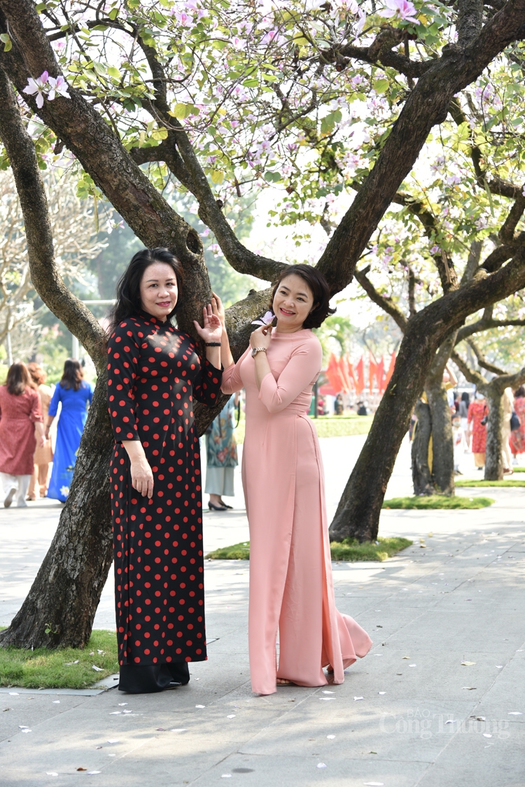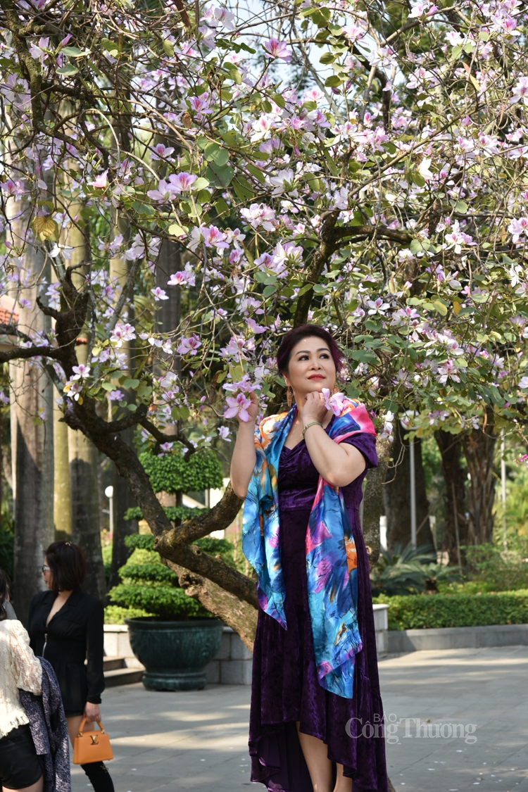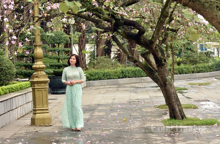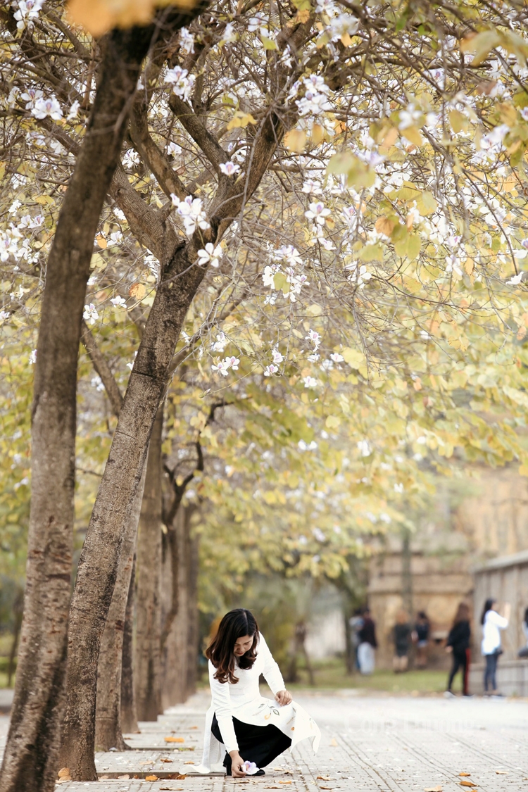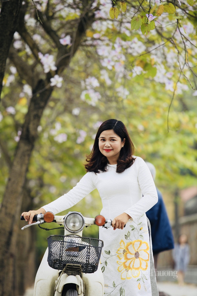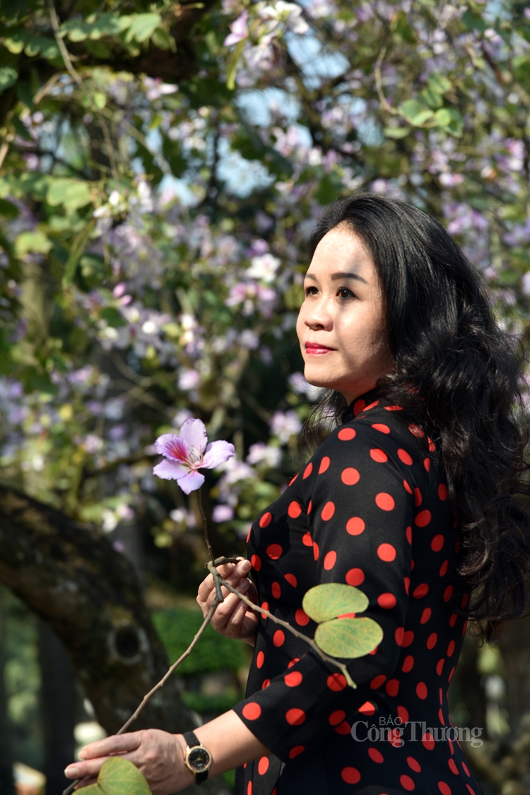 | Thiếu nữ Hà Thành thả dáng bên hoa ban |