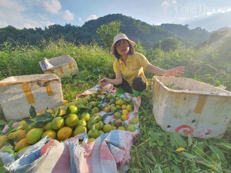 Chị Thủy cho biết, để cam Cao Phong có chỗ đứng trên thị trường, cần phải có quy trình sản xuất an toàn, minh bạch, có tem truy xuất rõ ràng. Năm 2018, chị Thủy thành lập HTX 3T nông sản Cao Phong, cùng với các hộ dân thành viên trồng cam theo hướng hữu cơ, hình thành chuỗi liên kết vùng trồng, hỗ trợ người dân phân bón, kỹ thuật chăm sóc, kết nối bao tiêu sản phẩm.