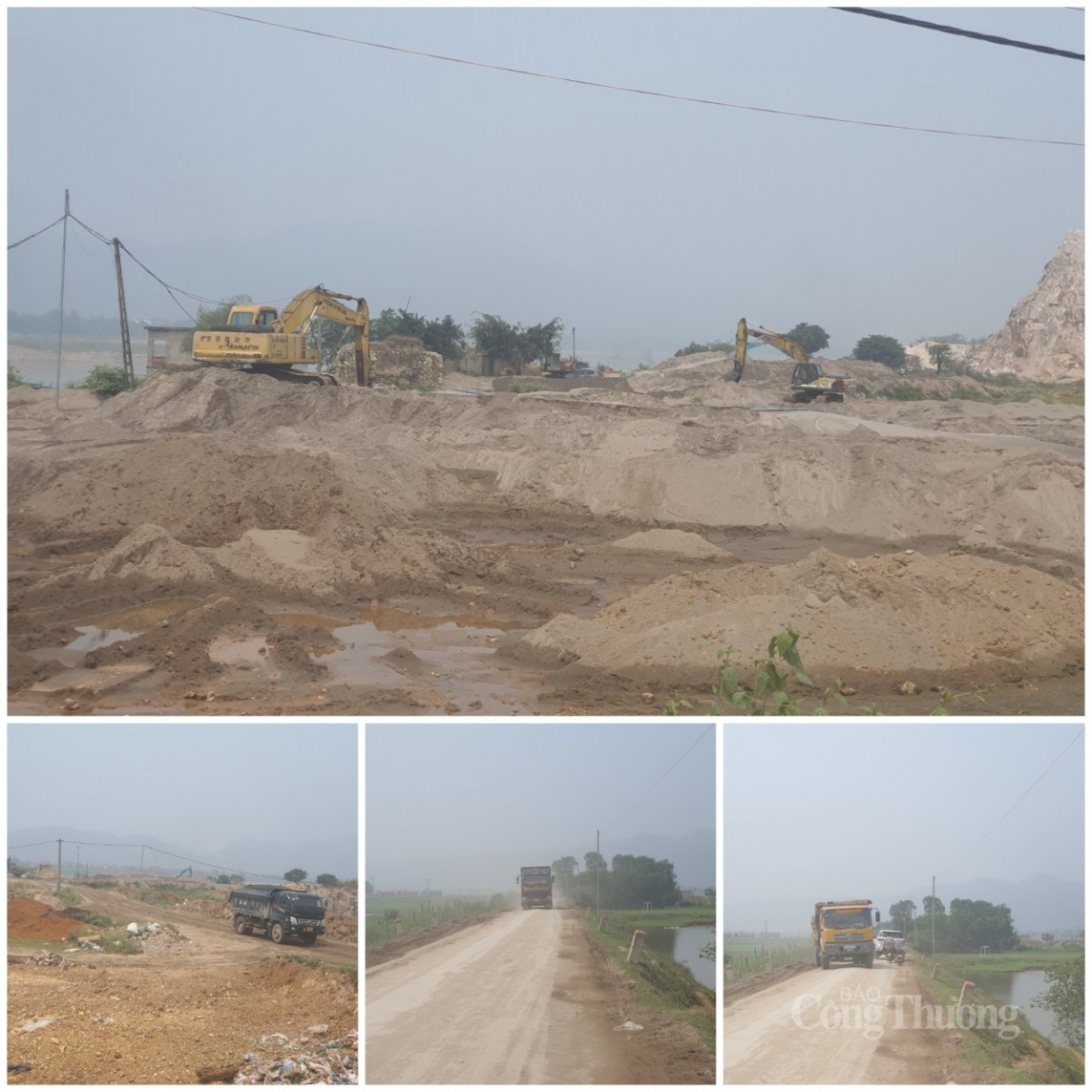 Ghi nhận của phóng viên Báo Công Thương ngày 31/3, các bãi tập kết cát này tập trung ven bờ phải sông Đà thuộc địa phận xóm Tôm (xã Thịnh Minh), cạnh tuyến đường Tỉnh lộ 445 Pheo – Chẹ (đoạn qua xã Thịnh Minh) đã xuống cấp trầm trọng, mặt đường nhiều ổ voi, ổ gà, 2 bên đường lõm xuống thành từng vũng dài, tiềm ẩn nguy cơ mất an toàn cho người tham gia giao thông. Ngoài ra, còn có rất nhiều xe đầu kéo 6 chân xếp hàng nối đuôi nhau chờ lấy cát.