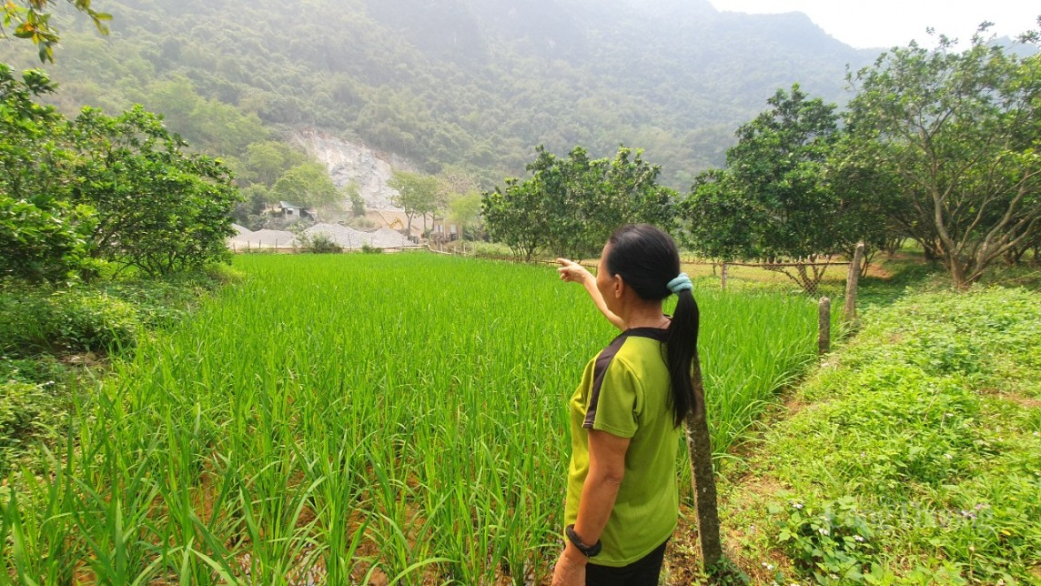 | Người dân xóm Cầu chỉ khoảng cách từ mỏ đá Núi Rộc đến ngôi nhà đang ở chỉ cách vài trăm mét |