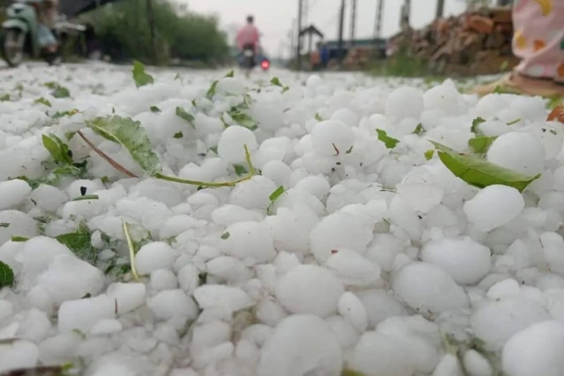 Hạt mưa đá có đường kính rất lớn. (Ảnh: NDCC)