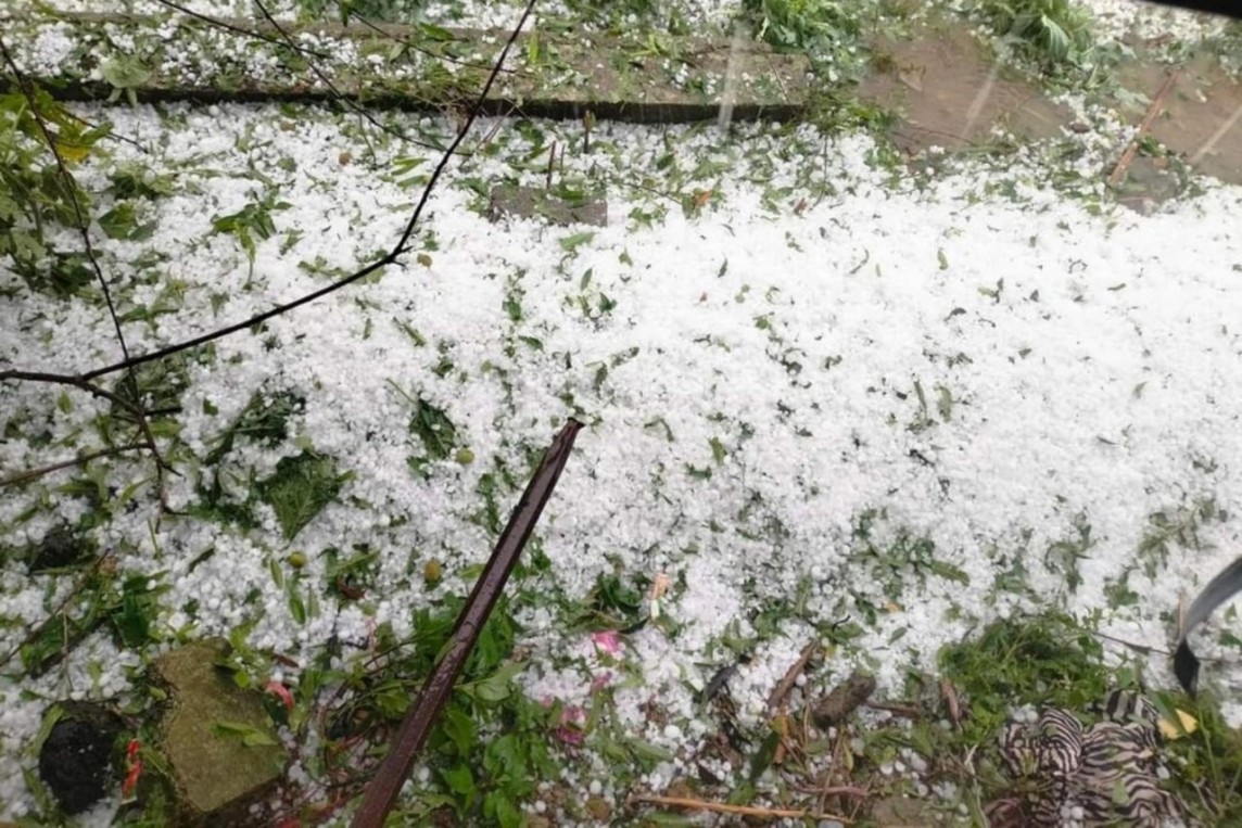 Theo đó, vào 16h -17h ngày 24/4, bất ngờ xảy ra cơn mưa đá lớn trên địa bàn xã Hang Kia, xã Pà Cò. Hạt mưa đá có đường kính lớn khoảng 1 - 2cm, phủ trắng xóa nương rẫy, đường đi, sân nhà, mái nhà...