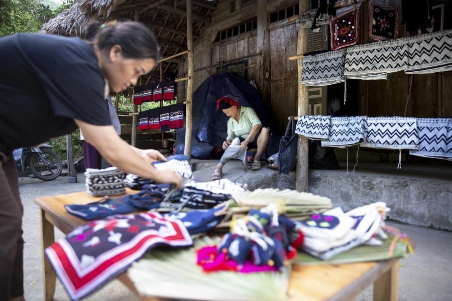 | Các sản phẩm thổ cẩm của người dân tộc Dao Tiền ở bản Sưng, xã Cao Sơn, huyện Đà Bắc, tỉnh Hòa Bình |