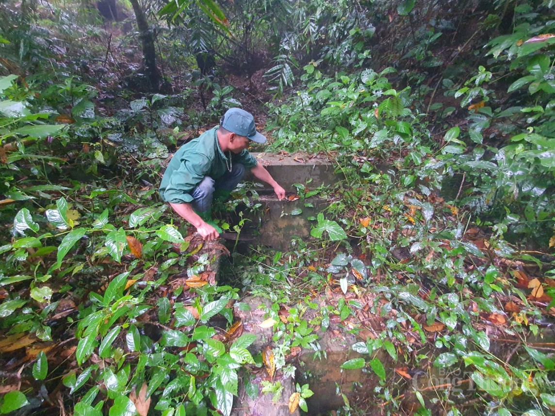 | Công trình nước sạch ở đầu nguồn tại xóm Trẳm, xã Ngổ Luông hiện đã bị vùi lấp, ngừng hoạt động |