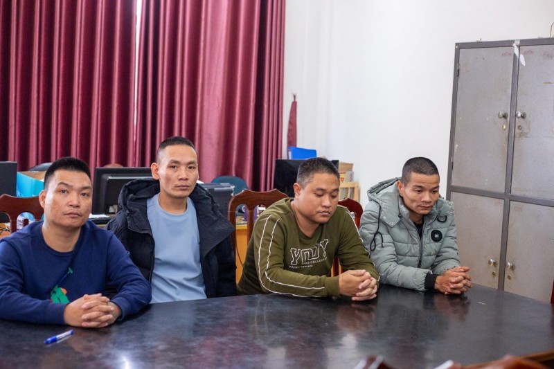 | Các đối tượng Nguyễn Văn Tùng, Nguyễn xuân Phúc, Nguyễn Ngọc Tuấn, Nguyễn Sỹ Kỳ (từ trái qua phải) tại Cơ quan Công an (Ảnh Công an cung cấp) |