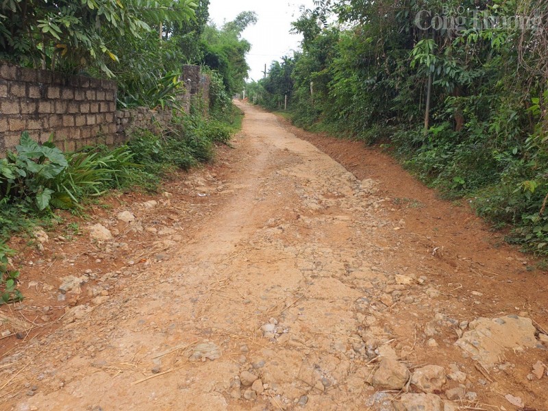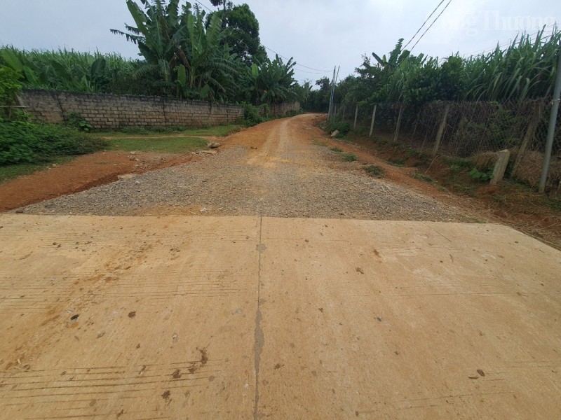 Do chưa có mặt bằng để thi công nên đoạn đường thuộc xóm Trang Trong, xã Hợp Phong đang tạm dừng xây dựng