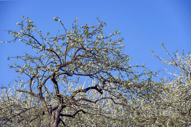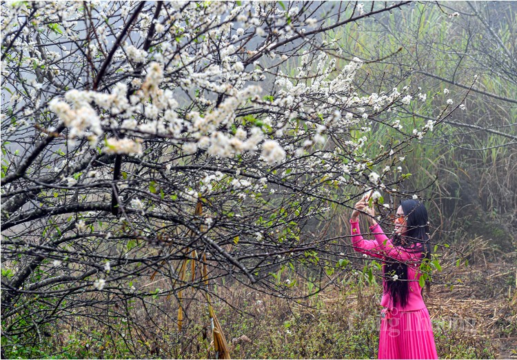 Dọc đường đi vào bản làng, đến ruộng nương, bên bờ rào đá, hay sau nhà của bà con người Mông nơi đâu cũng ngập tràn sắc hương của hoa mận. Những vườn mận ở đây bắt đầu nảy lộc đơm hoa, tạo nên một khung cảnh lãng mạn như níu chân du khách. Chùm hoa mận dày trắng tinh khôi, cánh hoa mỏng manh ôm lấy nhụy vàng. Chỉ cần cơn gió mạnh thổi qua cũng dễ dàng cuốn bay những cánh hoa mong manh vào không trung.