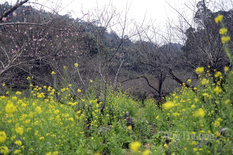 | Không chỉ có hoa mận, Hang Kia, Pà Cò còn được tô điểm bởi sắc hồng của hoa đào và sắc vàng của hoa cải |