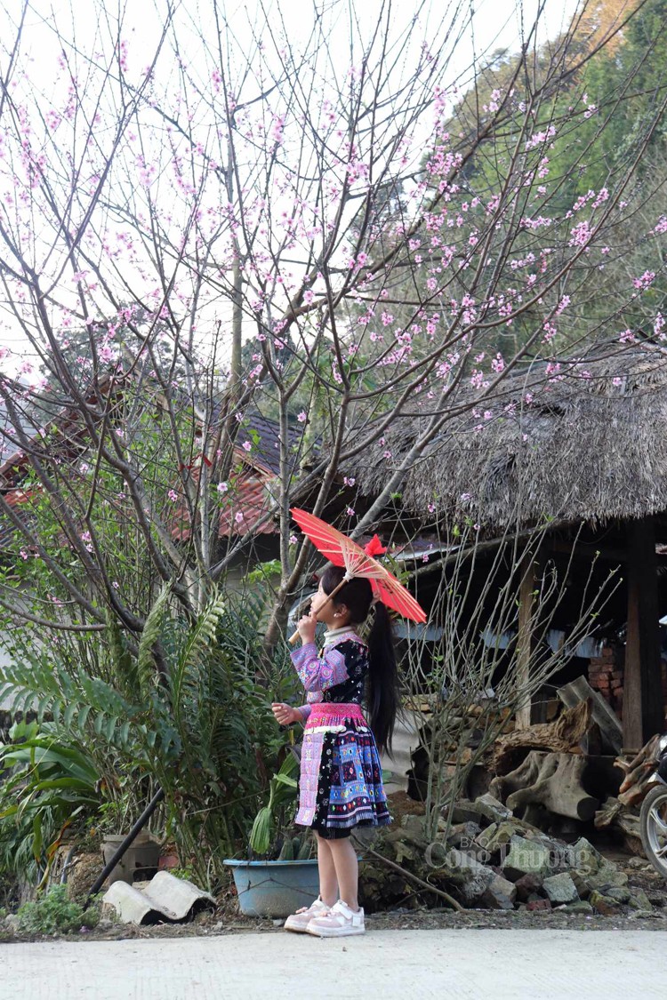 | Cô bé người Mông ngắm hoa đào đón Tết |