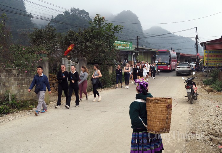 | Khách nước ngoài cũng rất háo hức được ngắm hoa mận, hoa đào tại Hang Kia, Pà Cò |